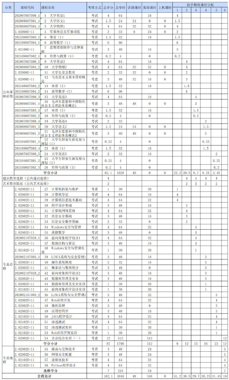 2021级高本贯通信息安全技术应用专业教学进度表