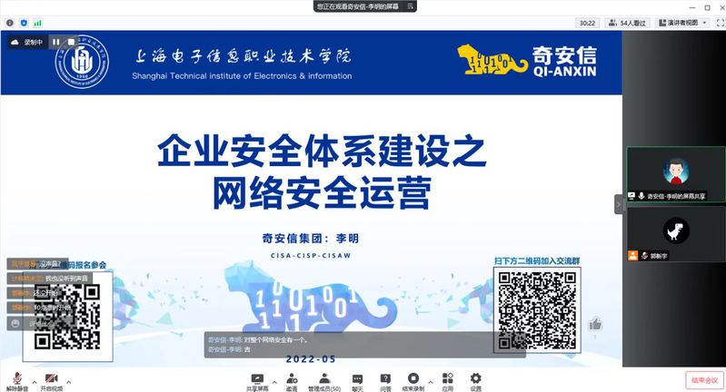 讲座主要围绕信息系统安全基础防护体系建设到一体化网络安全运营体系建设为主题,解答了并分享了什么是网络安全运营、网络安全运营解决了什么、如何网络安全运营体系构建等问题。李明老师还积极与在线学员们互动交流,耐心回答他们提出的问题。