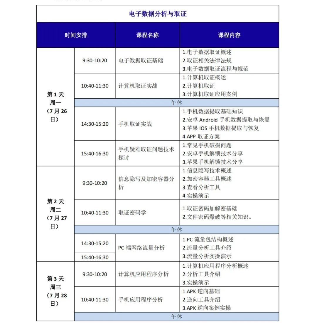 当前公安、检察、法院、企业等越来越需要大量的专业取证人才,为提升全国教师、企事业单位人员电子数据分析与取证能力,培养更多符合新时代的取证人才。上海电子信息职业技术学院联合奇安盘古(上海)信息技术有限公司、福建中锐电子科技有限公司于2022年 7月26日至7月29日在福建福州举办全国电子数据分析与取证师资培训班。培训结束后,颁发《电子数据取证证书》。