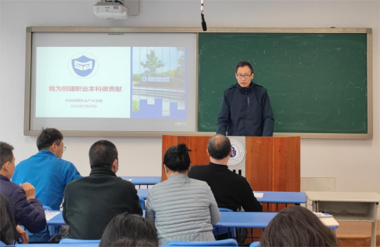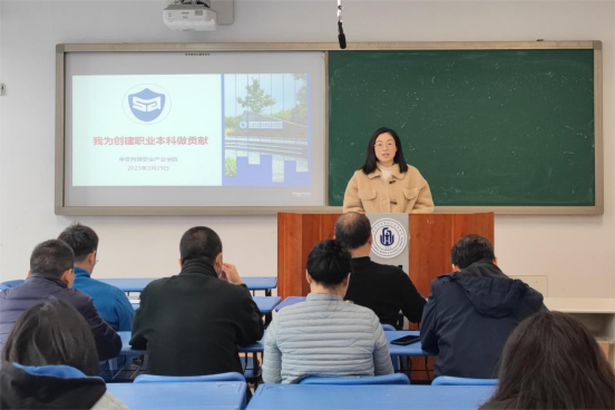 活动开始,陈真老师向大家介绍了学校的发展历程,就学校申本工作愿景和目前的推进进程做简要介绍,并强调申本工作关乎学校未来的发展,每一位电子信息人都应当以高度的政治自觉和使命担当投入到学校申本的各项工作去。接着,每一位教职工围绕“我为创建职业本科做贡献”这一主题逐一上台表态。老师们纷纷表示:在这一重要的关键节点上,大家一定牢牢把握机遇,围绕学校重点工作,对标学院工作要求,结合个人岗位职责,通力合作、主动作为,为申本工作贡献自己的智慧和力量。随后,副院长杨彪老师对申本工作的各项任务进行落实分配,并提出具体要求。