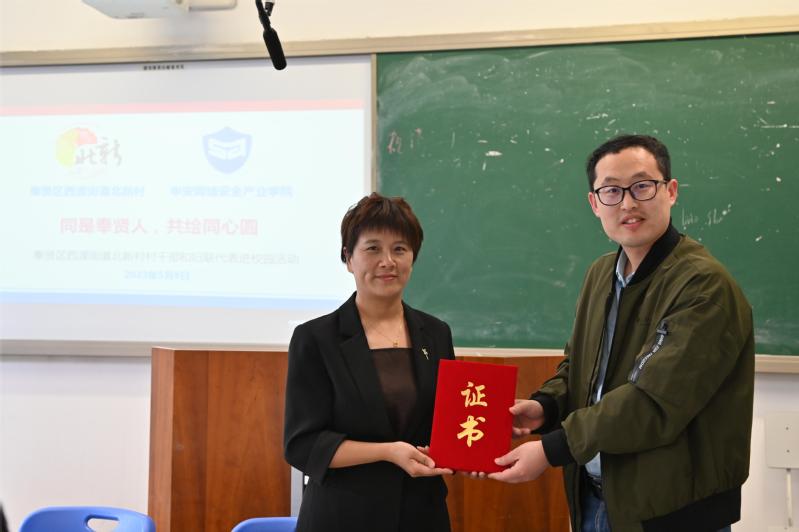 为大力加强新时代高校学生劳动教育工作,切实推进产教融合、劳教结合,2023年5月8日,申安网络安全学院邀请奉贤区西渡街道北新村20名村干部进校园,开展“同是奉贤人,共绘同心圆”交流互动活动,让新时代大学生近距离接触村干部,厚植劳动基因,同时也让新时代村干部了解当代高职院校教育发展情况。北新村党总支书记朱伟英,学工部副部长吴奇峰受邀参加本次活动。申安网络安全产业学院直属党支部书记、院长何永艳主持会议。村校携手,共创未来。