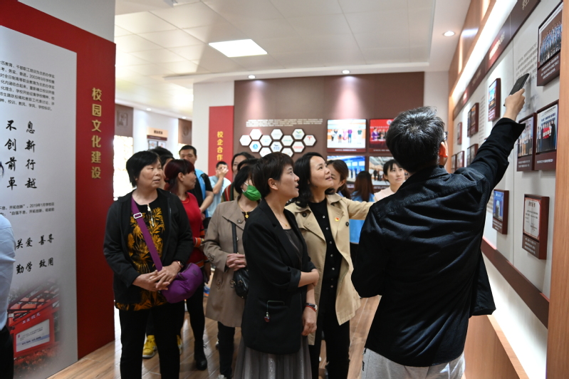 在申安学院师生代表的陪同下,北新村村干部参观了学校教学楼、实训基地、体育馆、毕业林、生活园区等处,申安学院直属党支部书记、院长何永艳全程讲解介绍,展示学院职业教育的办学特色。在校史馆讲解员的生动讲述下,村干部们对学校六十余年的办学历史和发展现状有了进一步了解。