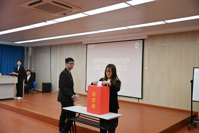 大会在听取并表决通过各项草案流程后,竞选正式开始。申安网络安全产业学院第二次学生代表大会5位主席团正式候选人们依次上台对自己基本情况和对未来的工作展望作一分钟竞选演讲。与会代表秉持公开、公平、公正原则,以无记名投票方式选举产生申安网络安全产业学院第二次学生代表大会主席团。