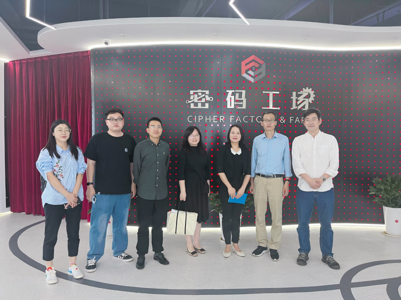 调研结束后,团队还参观了格尔软件松江基地的密码工场。密码工场的工程师们热情地带领团队参观了各行各业的密码落地场景,了解了格尔软件产品的广泛使用范围,包括上汽的智能汽车的应用等。在成果展示厅内,团队更深入地探讨了什么是真正意义上的“无密码不安全”,只有在密码赋能千行百业的基础上,才构筑了个人、社会和国家的数字安全堡垒。团队还详细了解了格尔软件自主可控的商业密码技术及相关知识产权,以及格尔软件公司的20年奋斗历程和产品迭代过程。