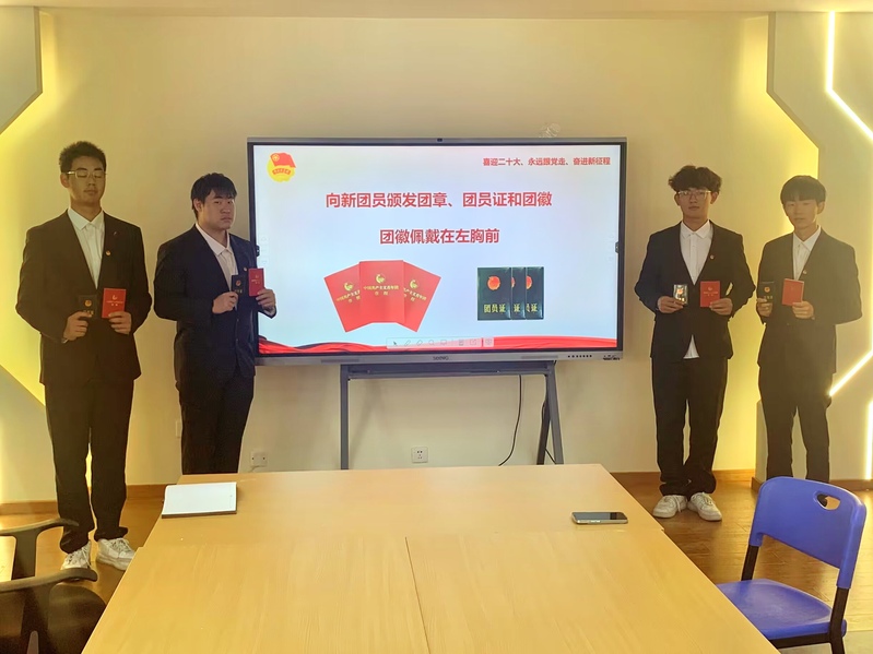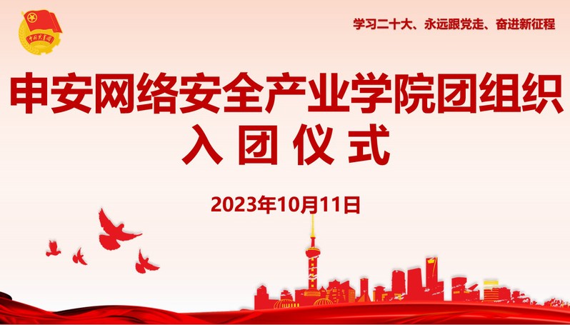 为深入学习贯彻习近平新时代中国特色社会主义思想,切实发挥学校共青团作为党的得力助手和后备军作用,为壮大中国共产主义青年团的鲜活力量,深化团的自身建设,为团组织注入新的活力,2023年10月11日,申安网络安全产业学院团总支在I301举行了新团员入团仪式。入团仪式由申安网络安全产业学院团总支副书记倪天诚同学主持,申安网络安全产业学院直属党支部副书记、副院长陈真老师,团总支负责人严佳惠老师,新、老团员到会。