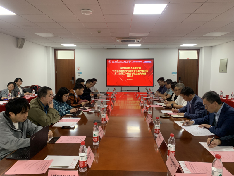 为进一步落实上海市中高职贯通教育专业教学标准开发项目第二阶段工作,继续加强我院与上海市行政管理学校中高职贯通项目的人才培养工作,2023年10月14日上午9:00开始在上海市行政管理学校尚德楼5楼第一会议室召开了上海市“信息安全技术应用”中高职贯通专业工作任务与职业能力分析研讨会。出席会议的有上海市教师教育学院(上海市教委教研室)职成教部负责人曾海霞、上海电子信息职业技术学院副校长方林中、上海市行政管理学校校长仲肇森、浙江大学教育学院博士后宾恩林,以及来自信息安全行业知名企业的技术专家,和来自上海电子信息职业技术学院、上海科学技术职业学院、上海行政管理学校、上海信息技术学校、上海科技管理学校的专业教师共34人。