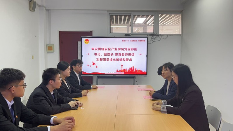 为深入贯彻落实习近平新时代中国特色社会主义制度,深刻领悟学习党的二十大精神,深入贯彻团中央团员和青年主题教育部署,按照团中央《面向广大团员和青年开展学习贯彻习近平新时代中国特色社会主义思想主题教育团支部专题学习工作指引》,为中华民族伟大复兴事业培养输送新鲜血液,切实发挥共青团作为党的得力助手和后备军的作用,申安网络安全产业学院团总支于2023年11月7日于I309A举行新团员入团仪式。此次仪式由申安网络安全产业学院团总支副书记倪天诚主持,申安网络安全产业学院直属党支部副书记、副院长陈真老师,团总支负责人严佳惠老师,新、老团员到场。