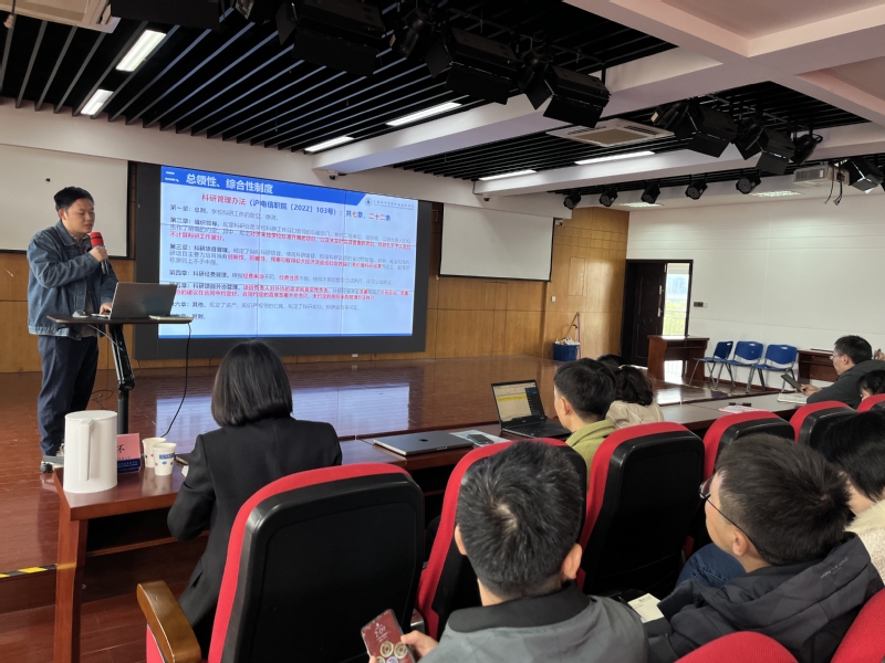 付老师从科研制度体系概况、总领性、综合性制度、项目管理制度、平台管理制度、成果管理制度、考核激励制度等内容进行详细的解读。同时,各位老师就各自在做科研项目过程中遇到的各种问题和困难向付老师请教,付老师都耐心地进行详细解答。
