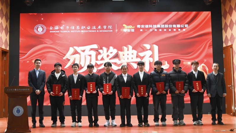 在颁奖典礼环节,孔德亮致辞并对获奖学生表示祝贺。傅建勤代表学校向奇安信集团对我校奖学金捐赠表示感谢,并颁发“奇安信奖学金”捐赠证书。校企双方领导为获得“奇安信奖学金”的同学以及在第二届奇安信杯网络安全技能竞赛中取得优异成绩的获奖代表颁奖。赵坚在颁奖典礼致辞中对孔德亮一行的到访表示诚挚欢迎和感谢。