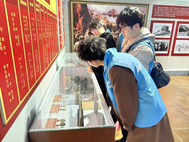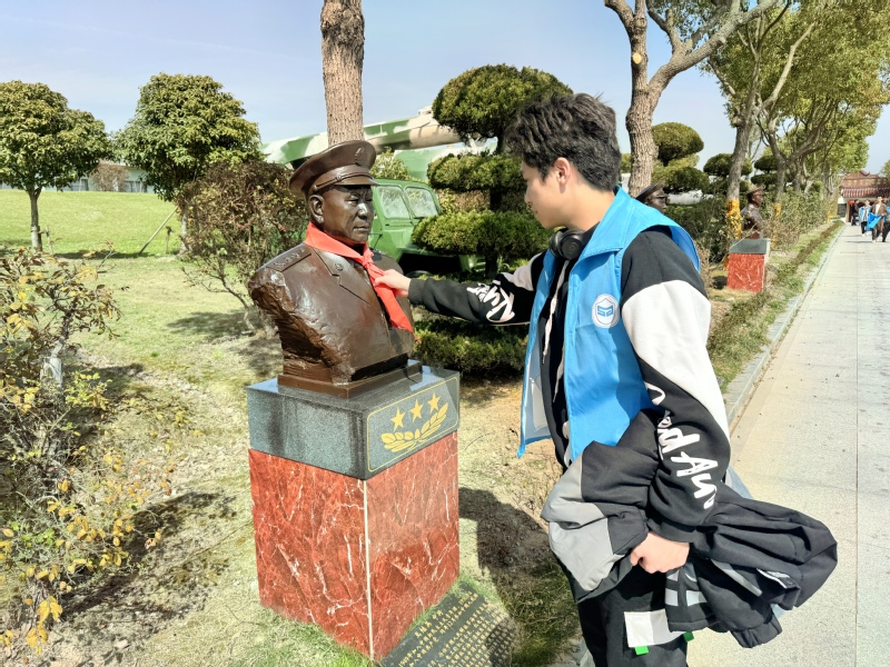 纪念馆中珍藏着许多历史文物、资料照片、视频影像,详尽记录了中国人民志愿军入朝征战历程,展现了志愿军战士不畏强敌,不怕牺牲,勇夺胜利的无畏气概。这让同学们深刻感受到中国人民志愿军的英勇抗争精神,和不畏强暴、反抗强权的民族风骨。为向英雄致敬,向祖国致敬,我院团员青年特在中国人民志愿军纪念馆毛泽东同志像前,由优秀团员贠轩同学带领,集体重温入团誓词。