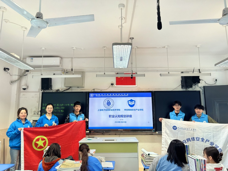 面向新的历史征程,推进大中小学思想政治教育一体化建设是全面落实立德树人根本任务的客观需要,是推动思想政治教育高质量发展的内在要求,是加快教育现代化、建设教育强国的必然之举。为切实贯彻落实2024年政府工作报告中关于:“落实立德树人根本任务,推进大中小学思想政治教育一体化建设”要求,深度结合我院专业特色和育人要求,申安网络安全产业学院特组建职业认知和网络伦理宣讲团,联手中学和本科学院,于2024年3月在上海市新场中学、上海市商业学校、上海应用技术大学开展宣讲、交流和调研活动,对中学生聚焦职业认知和网络伦理开展宣传教育,对大学生就网络道德现状和网络伦理教育机制开展调研。