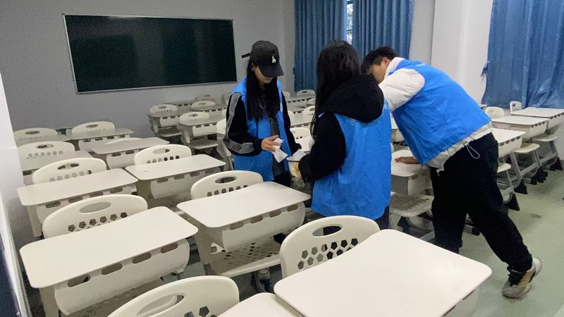 活动期间,我院团总支志愿服务队在每晚最后一节课结束后,巡逻检查各教学楼的每一间教室,关闭课后未及时关闭的电灯、多媒体设备,关好教室门窗,并打扫教室卫生,排放好桌椅,为同学们营造整洁良好的学习环境。