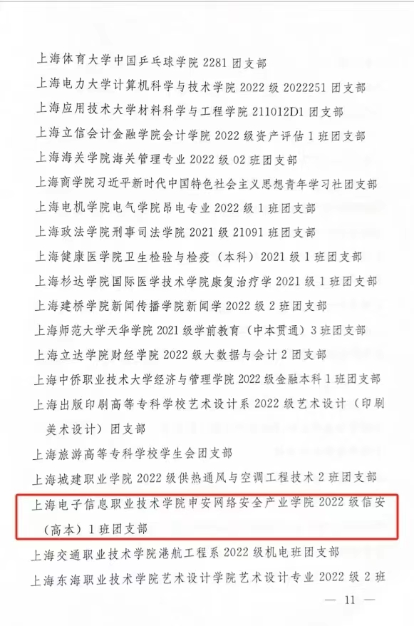 为进一步发挥典型示范引领作用,巩固拓展团员和青年主题教育成果,推动理论学习成为广大团员和青年的思想自觉和行动自觉,组织动员团员和青年在学习与实践中感悟思想伟力、锻造过硬本领、激发挺膺担当。近日,共青团上海市委会发布了《关于对上海市团员和青年主题教育理论学习典型集体和个人予以通报表扬的决定》,申安网络安全产业学院2022级信息安全技术应用(高本)1班团支部发挥典型集体的示范引领作用,获团市委通报表扬。
