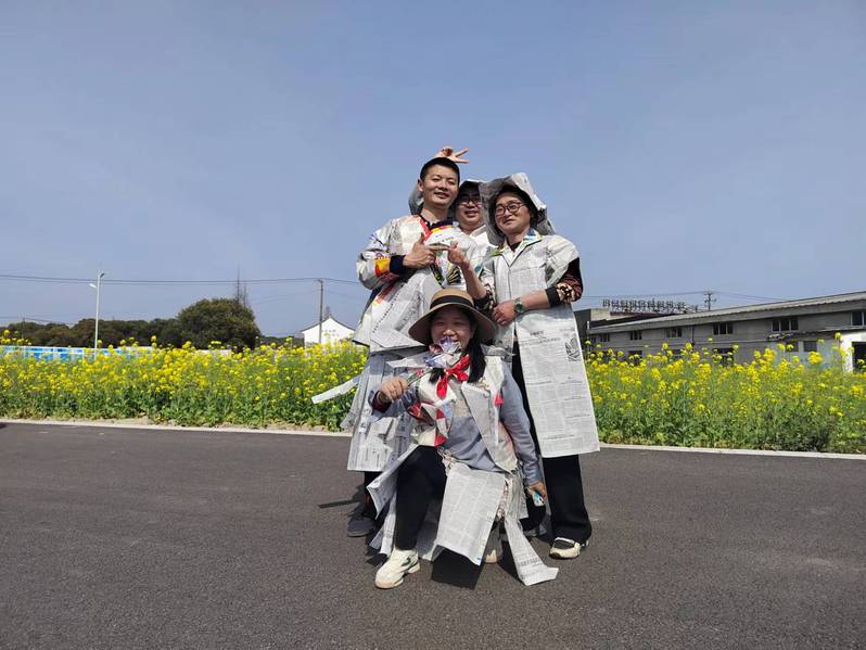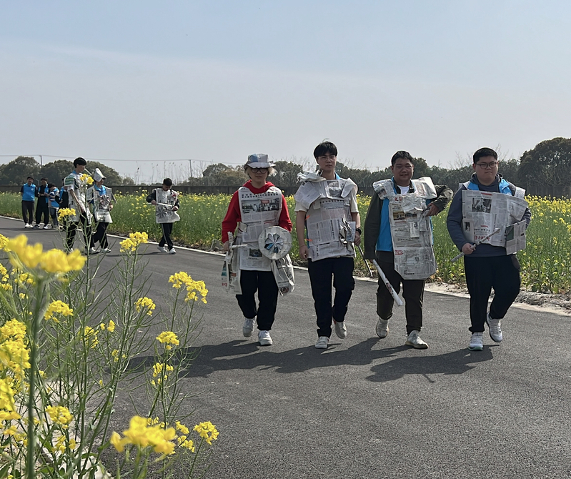 2023年1月,国务院新闻办公室发布《新时代的中国绿色发展》白皮书,全面介绍新时代中国绿色发展理念、实践与成效。为积极参与到新时代中国绿色发展行动中去,引导新时代青年人树立和践行绿水青山就是金山银山的理念,在学习结束后,村校团员和青年充分发挥自己的想象力,通过实际动手操作对旧报纸进行了创意制作,以此体会、感悟废物再利用的意义和价值。大家穿着自己制作的环保时尚衣裙在油菜花地进行了一场别开生面的“环保时装秀”。从简约大方的连衣裙到别致的短裙套装,从帅气的夹克到优雅的长袍,每一件作品都蕴含着丰富的创意和深刻的环保理念。团员和青年们充分认识到,环保并不只是口号和理论,而是需要每个人从自身做起,从点滴小事做起,减少废物排放,还可以节约资源,为创建绿色中国贡献自己的一份力量。