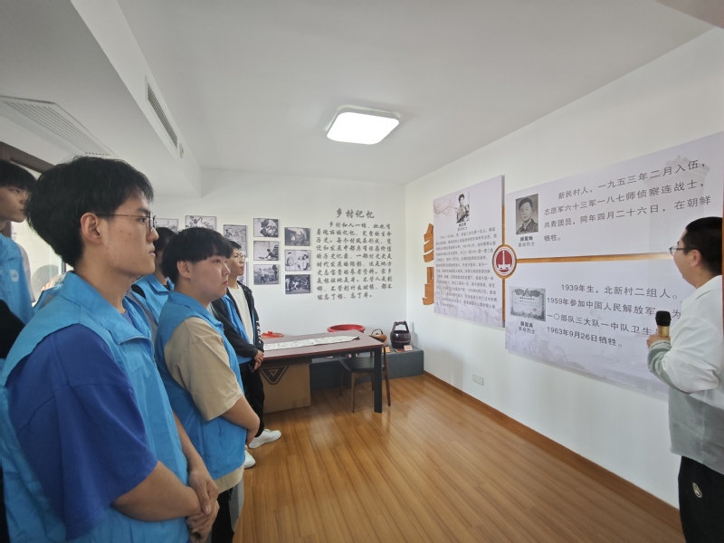 在“北新村英烈事迹学习会”版块,在北新村乡贤馆工作人员的带领下,团员和青年一同来到北新村乡贤馆了解了北新村的发展历史,并着重学习了北新村村民顾耀炳、薛国真和姚忠修三名革命先烈的英勇事迹。随后,同学们在会议厅观看了抗美援朝老兵口述实录《七十年,山河铭记》。在清明节即将到来之际,北新村和申安学院以本次活动为载体,为团员和青年代表根植革命文化、厚植爱党爱国情怀。同学们深切缅怀革命先烈,汲取不断前行的力量。
