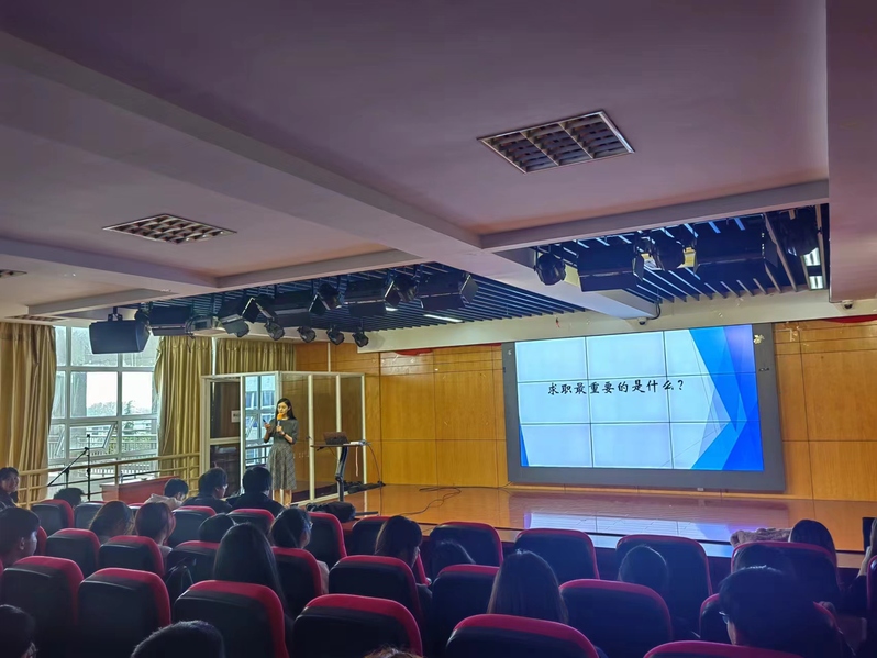 在讲座中,沈颖颖老师强调了简历在求职过程中的重要性。她详细解析了简历的组成要素,包括个人信息、教育背景、实习经历、技能特长等,并分享了撰写简历时的一些实用技巧,如如何突出自己的优势、如何使简历更具吸引力等。同时,她还强调了简历的真实性和针对性,提醒学生们在撰写简历时要注重细节,避免常见错误。