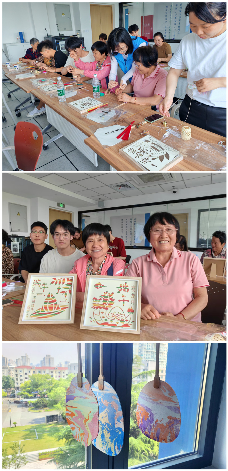 在端午节来临之际,双方领导向在场的村民和师生们送出祝福。在大家共同学习观看了关于端午节的起源、传说以及各地庆祝习俗的“浓情端午,品味传统”端阳知识短片后,活动进入互动体验环节。在志愿者的指导下,村民和同学们学习制作了香囊、竹编画和漂漆团扇三种的中华传统工艺。