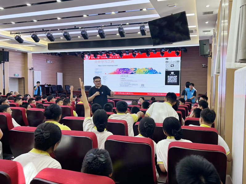 会后,申安网络安全产业学院的郭新宇老师在学校报告厅为近百名师生带来了一场关于AGI(通用人工智能)的精彩讲座。郭老师从AI的进化历程讲起,深入浅出地阐述了AI在会话、音频、视频等多个领域的应用现状与发展趋势,并特别强调了AI+教育模式的创新探索。他还分享了一系列优质的AI学习网站资源,为在座师生打开了通往人工智能世界的大门,激发了大家对新技术、新知识的浓厚兴趣与探索欲望。
