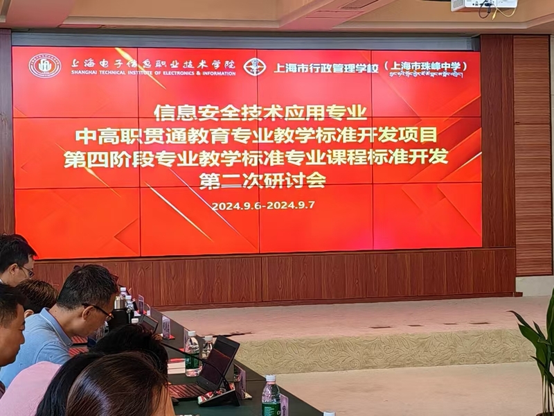 为了进一步提升教学质量,完善课程体系,2024年9月6日到7日,上海市信息安全技术应用专业中高职贯通教育专业教学标准开发项目第四阶段专业教学标准专业课程标准开发第二次研讨会在上海市工程技术管理学校崇明服务培训中心举行。上海市教委教研室职成教部主任曾海霞老师、上海市行政管理学校仲肇森校长、上海市教师教育学院王笙年博士、信息安全技术应用专业中高职贯通教育专业教学标准开发项目组全体成员参加了此次会议。会议由上海电子信息职业技术学院申安网络安全产业学院副院长杨彪老师主持