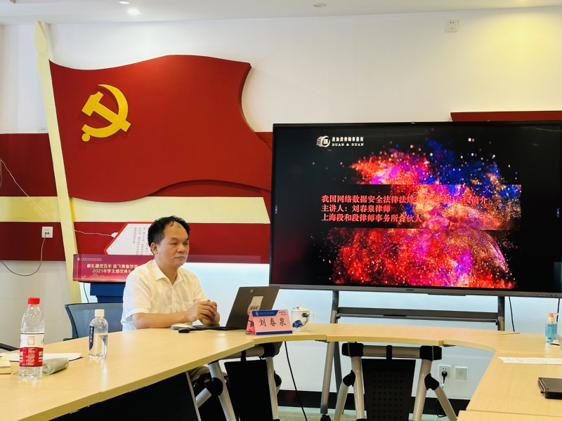为深入贯彻落实国家关于网络安全的战略部署,提高广大师生的网络安全意识和防护能力,申安网络安全产业学院直属党支部在2024年9月18日举办了一场以“网络安全法律法规及学校知识产权简介”为主题的党日活动专题讲座。此次讲座特邀上海段和段律师事务所合伙人刘春泉律师主讲,获得了全体教师们的热烈欢迎和积极参与。