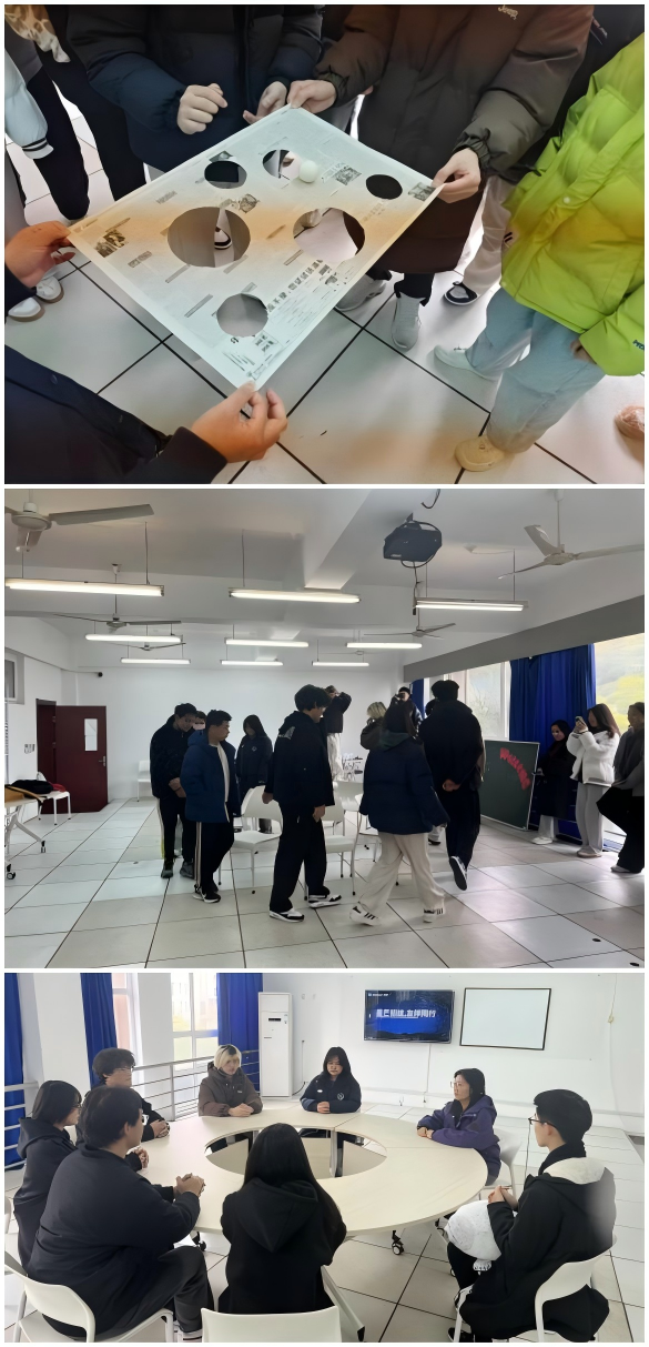随后,同学们在严佳惠老师的带领下,进入了破冰环节。现场活动气氛热烈,参与者全神贯注。在紧张的游戏过程中,同学们不仅锻炼了眼手协调能力,更在不断尝试中摸索诀窍,学会如何在压力下保持冷静,在竞争中合作互助。