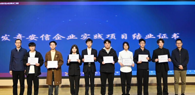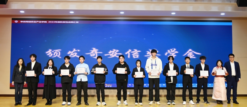 在颁奖环节,校企领导共同为在网络安全技能竞赛和学生社会实践活动中表现突出的学生颁发“奇安信奖学金”。张宏鑫、倪天诚两位同学获得奇安信奖学金“特殊贡献奖”。此外,校企领导还共同为参与奇安信企业实践项目的学生颁发了结业证书,肯定了他们在真实企业场景中锤炼并收获的实战能力。