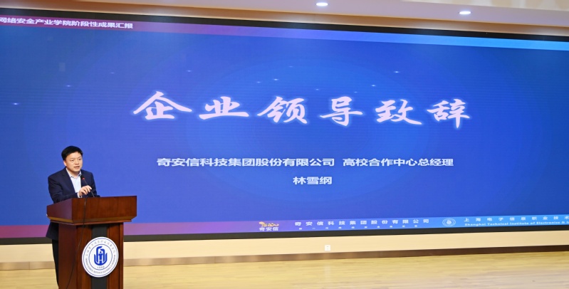 活动伊始,上海电子信息职业技术学院党委副书记、副院长张涛代表学校致欢迎词辞。他肯定了申安学院在践行“政校行企”四方协同、共育网络安全人才过程中做出的努力,并对政校行企共建单位的大力支持表示感谢。随后,奇安信科技集团股份有限公司高校合作中心总经理林雪纲致辞,他表示,奇安信将持续深化与申安学院产教融合、协同育人,共同推动网络安全人才的培养,助力国家网络安全事业的发展。