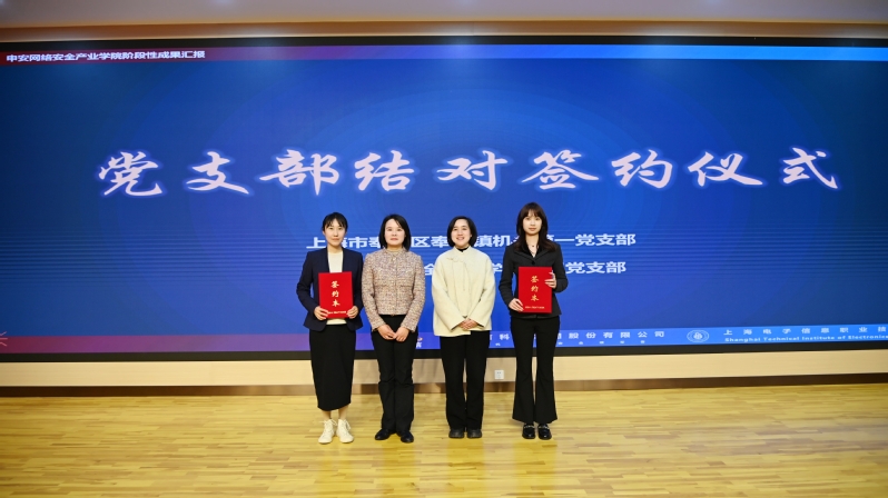 为进一步深化政校协同合作,申安网络安全产业学院直属党支部与奉城镇机关第一党支部签署了共建协议。在未来的工作中,校地双方将形成“党员共育、项目共建、资源共融”三维联动态势,为培养具有大德大爱大情怀的网络安全后备军贡献智慧和力量。