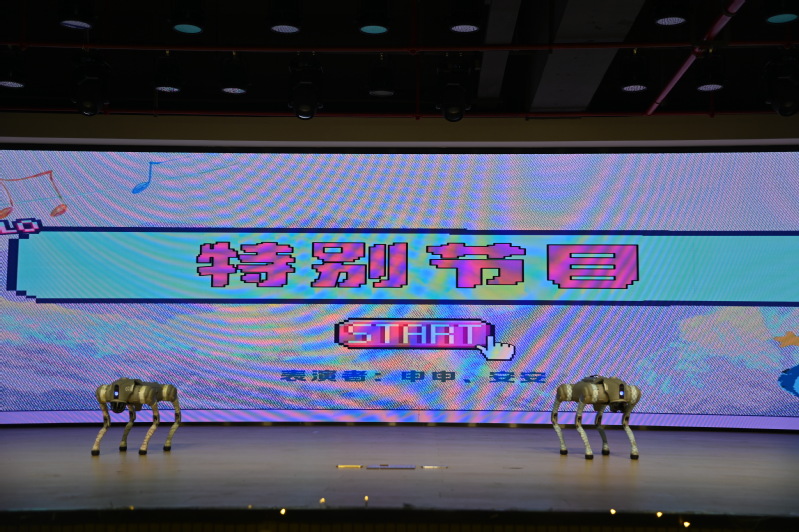 所有节目表演结束后,现场进入激动人心的投票环节。同时,申安网络安全产业学院的吉祥物智能狗“申申”和“安安”登台亮相,以灵动可爱的表演为现场增添欢乐,赢得全场的掌声与欢笑。