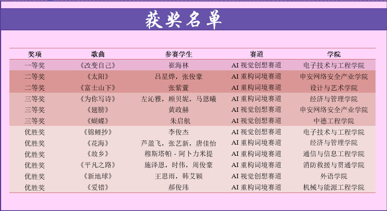 第十届校园文化艺术节“科技赋能音乐,青春礼赞时代”校园歌唱大赛圆满落下帷幕。本次大赛以声音为桥梁,融合AI技术与艺术创新,不仅为同学们提供了展示能力与创意才华的舞台,更通过AI赋能的全新演绎形式,激发同学们在科技与艺术的交汇中探索创新。未来,学校将持续以文化育人、以美育润心,激励青年学子以奋发昂扬的姿态投身时代伟业,为实现中华民族伟大复兴的中国梦凝聚无尽青春力量。
