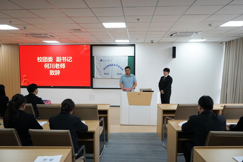 数字科技赋能新时代,青春盛会引领新征程。为深入贯彻习近平新时代中国特色社会主义思想,彰显青年担当,助力中国式现代化。2025年5月28日,申安网络安全产业学院在“数字时代新青年,踔厉奋发向‘新’行”主题下,成功召开了第四次学生代表大会。本次会议由我院学生会执行主席万一可主持。会议选举产生第四届学生会主席团。上海电子信息职业技术学院团委副书记何川,申安网络安全产业学院直属党支部副书记、副院长陈真,申安网络安全产业学院团总支书记严佳惠,校学生会代表袁奕庄婷,通信与信息工程学院学生会干部崔林浩及我院40余位学生代表出席本次大会。