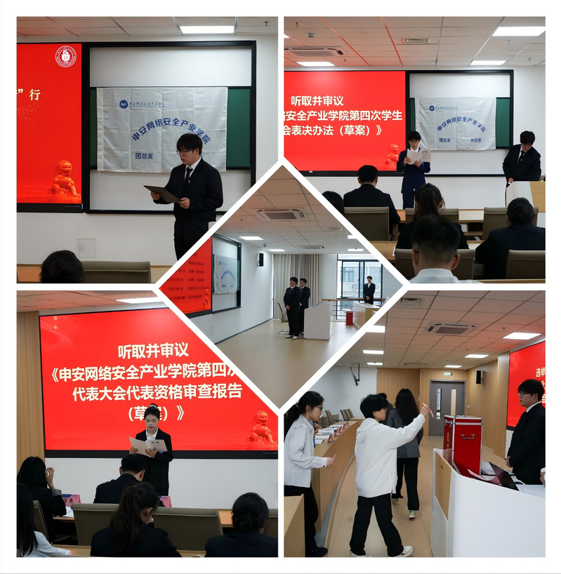 随后,与会代表听取并审议通过了申安网络安全产业学院第四次学生代表大会表决办法、代表资格审查报告、筹备工作组名单、筹备工作报告等草案后,大会严格按照选举程序进行,采用无记名投票和差额选举的方式,并确保选举过程的公开、公平、公正。最终,经过紧张而有序的投票,顺利选举产生了申安网络安全产业学院第四届学生会主席团的三位新成员。本次选举为新一届学生会的工作注入了新鲜的血液和动力,标志着我院学生会进入了一个新的发展阶段。
