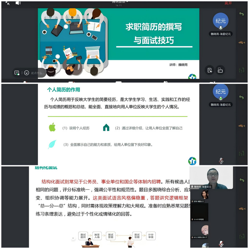 为助力大三学生提前做好求职准备、提升应聘竞争力,10月15日,申安网络安全产业学院通过腾讯会议,为全体大三学生举办“求职简历撰写与面试技巧”专题讲座。本次讲座特邀高级职业培训师魏晓雨老师主讲,为即将步入求职阶段的学生搭建学习交流平台,解决求职准备中的关键问题。本次培训由学院直属党支部副书记、副院长陈真主持。