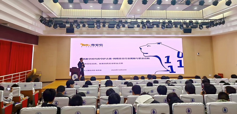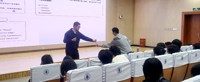 讲座尾声,主持人陈真号召全体大一新生将讲座所学转化为明确学习目标,主动参与学院与奇安信的校外实践项目,在实践中熟悉行业规则、积累实战能力,为自己铺就一条通往网络安全行业的职业之路。
