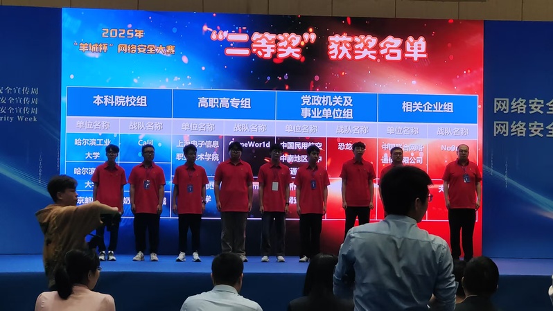 10月25日,2025年“羊城杯”网络安全技能大赛决赛在广州职业技术大学落幕。来自全国30多支顶尖战队同台比拼,学院GameWor1d战队在张月红老师指导下,高国栋、蔡嘉骏、马灏齐、张晋炀四名队员沉着应战、默契配合,在攻防实战等三大核心赛道的高强度对抗中脱颖而出,以全国高职院校排名第二的成绩斩获二等奖。