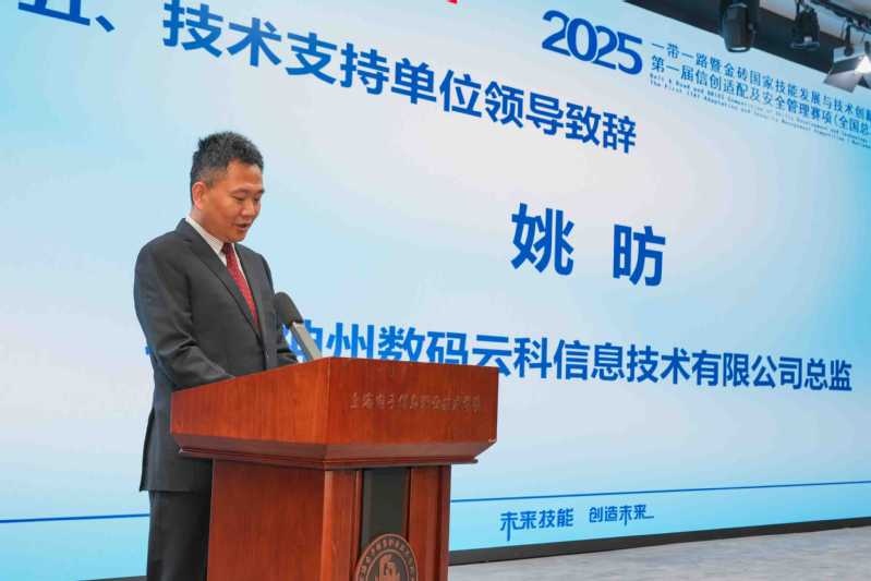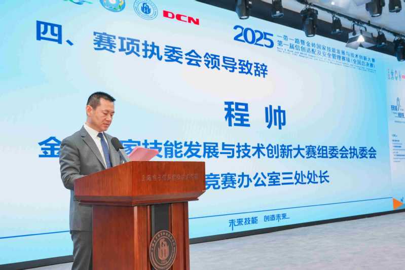 赵晓伟在致辞中指出,信创产业作为国家信息技术安全的重要保障,是推动数字经济高质量发展的核心支撑,此次“信创适配及安全管理”赛项的举办,为高校人才培养与行业需求对接搭建了重要桥梁,希望各参赛队伍以赛促学、以赛促练,涌现出更多信创领域的优秀人才。赵坚在致辞中表示,学校始终高度重视信创人才培养,申安网络安全产业学院的建设正是响应国家战略需求的重要举措,此次承办全国总决赛,既是对学校办学实力的认可,更是推动信创教育高质量发展的重要契机。赛事主办方代表则详细介绍了金砖大赛的发展历程与赛事意义,强调该赛事已连续八年在《金砖国家工商理事会年度报告》中作为成果呈送给金砖五国最高领导人,累计参与人次超45万,是推动金砖国家间教育合作与技术交流的重要平台。