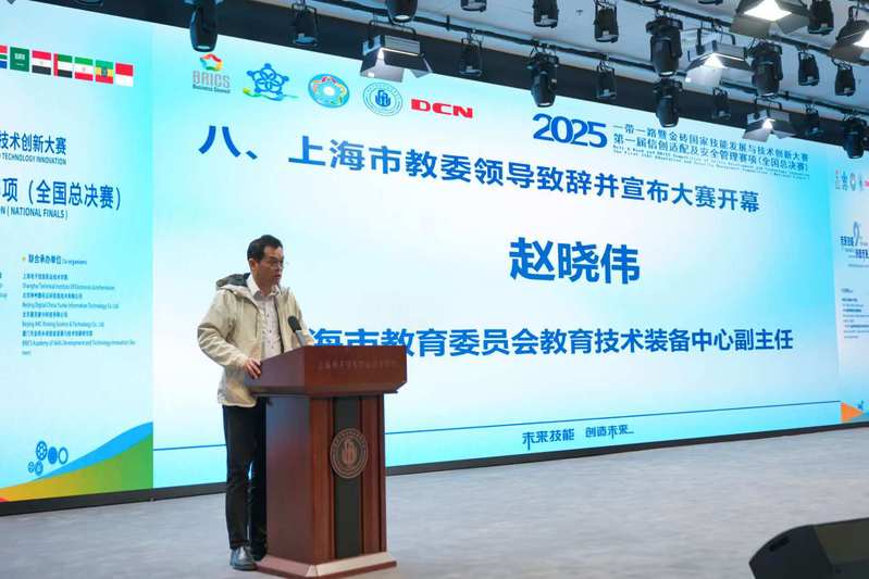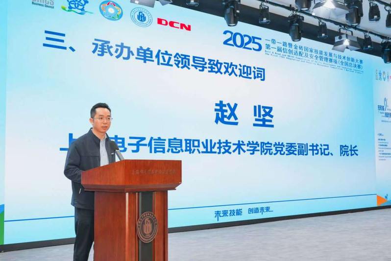 11月14日下午,本次全国总决赛开幕式在学校大礼堂隆重举行。上海市教育委员会教育技术装备中心副主任赵晓伟、上海电子信息职业技术学院党委副书记、院长赵坚、金砖国家技能发展与技术创新大赛组委会执委会国内竞赛办公室三处处长程帅出席仪式并致辞,上海电子信息职业技术学院副院长方林中主持仪式,赛事主办方代表、行业专家、各参赛院校领队及选手、我校领导与师生代表共同见证了这一重要时刻。