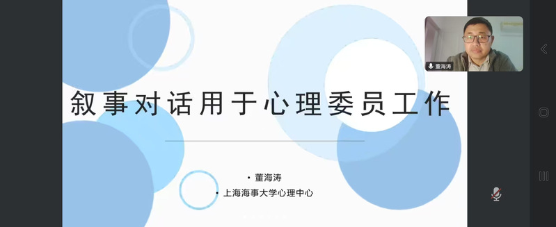 为引导我院心理委员、班干团队深化职业认知、挖掘自身潜能,11月12日下午,申安网络安全产业学院通过腾讯线上会议举办了“从职能发挥到职业认知的实践路径”专题讲座。本次讲座特邀上海海事大学心理健康教育与咨询中心主任董海涛副教授担任主讲,聚焦“叙事疗法在职业探索与心理成长中的实践应用”,为同学们搭建了一座连接内心世界与职业发展的桥梁。